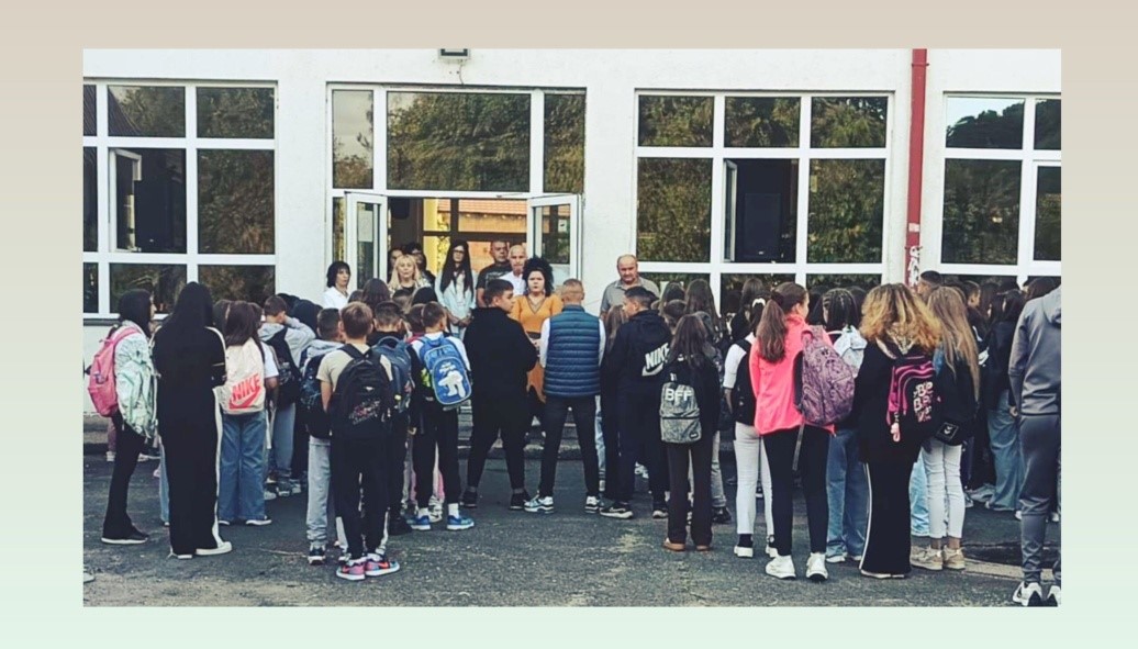 Интонирањем химне почела је нова школска 2025/2026. година. Ученицима је успех пожелео ВД директора школе Срећко Богдановић.