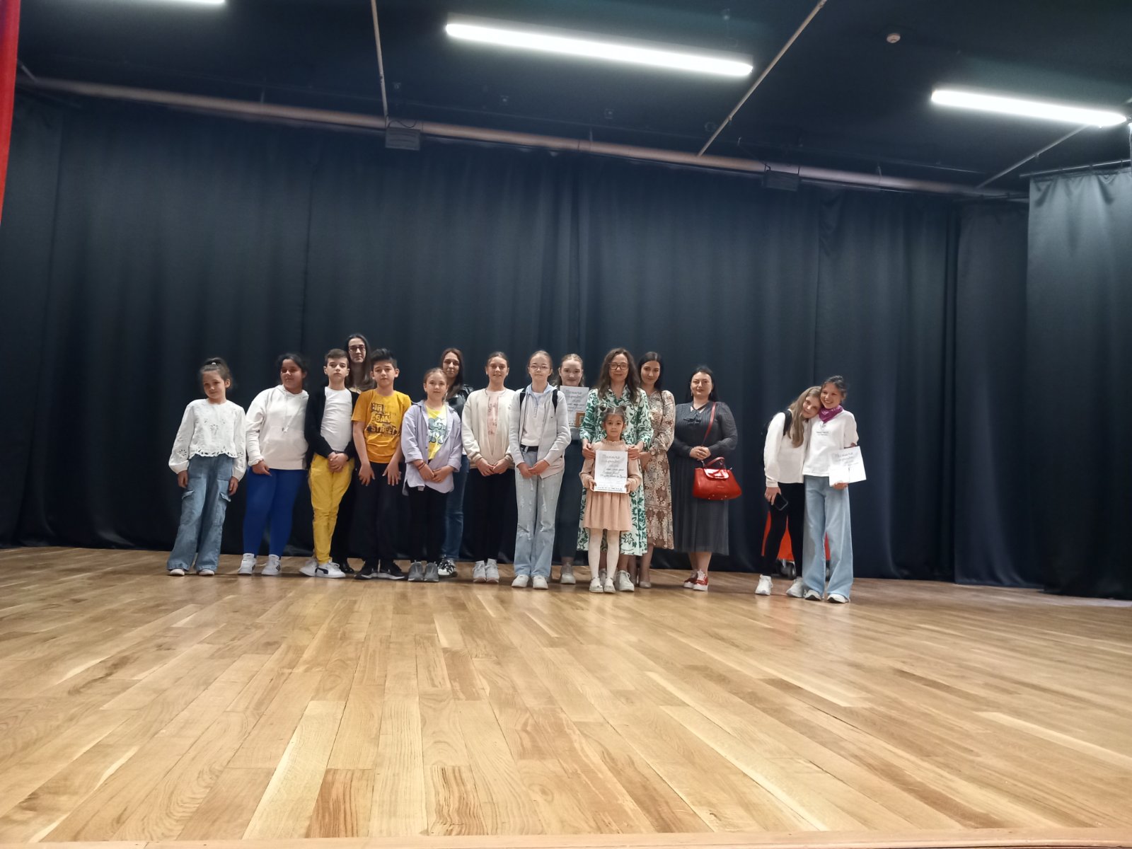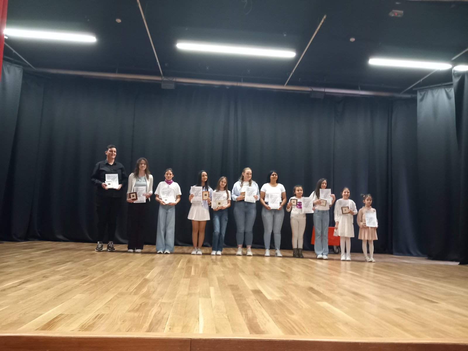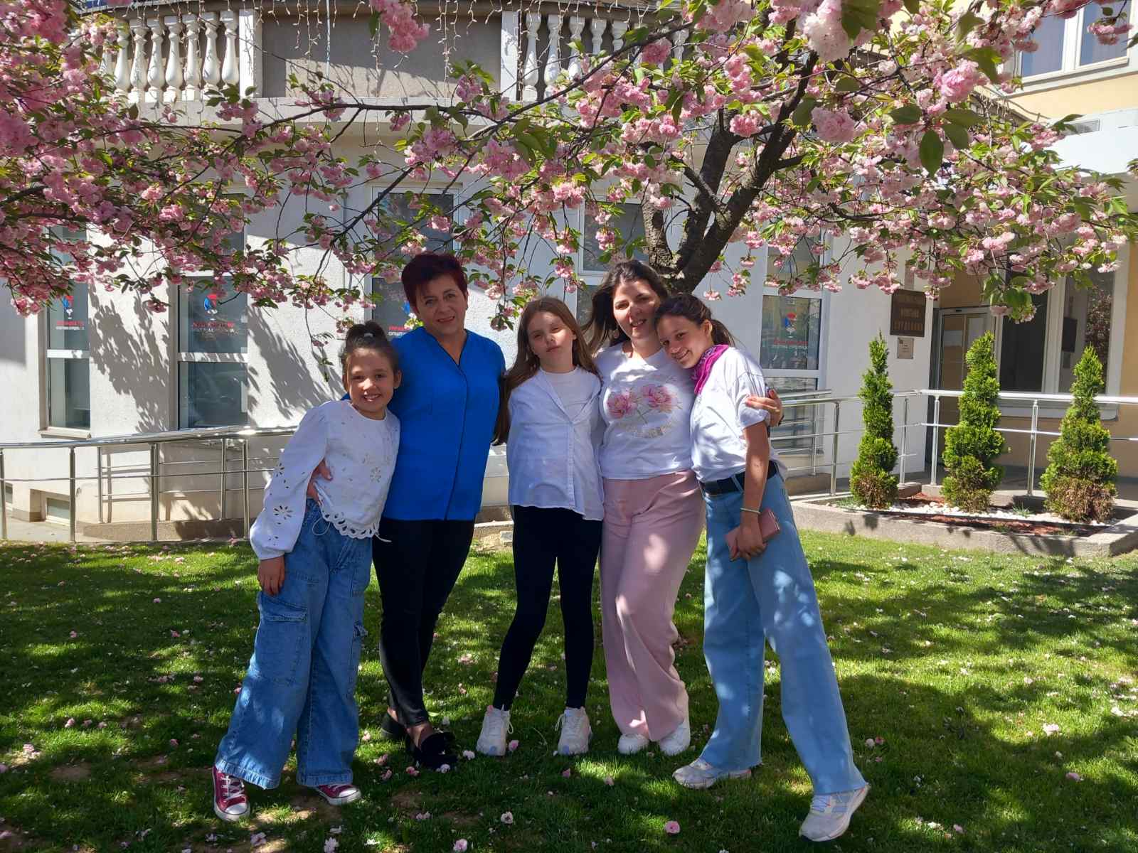 На фотографијама: Зонка, Олга, Нађа , наставница српског језика, Ивана Антић и учитељица Лидија Томић, које су пратиле ученице на такмичење.