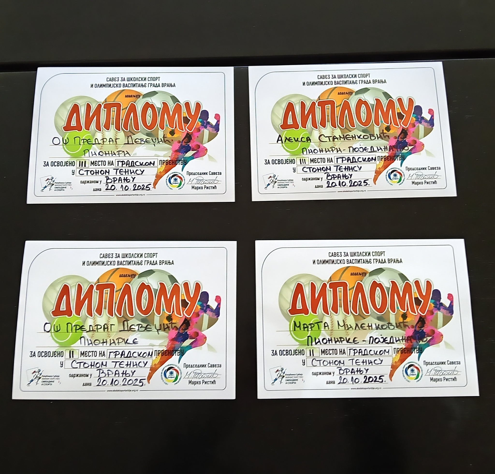 Ученици наше школе учествовали су на такмичењу у стоном тенису које организује Савез за спортски спорт и олимпијско васпитање Града Врања, 20. 10. 2025. године.